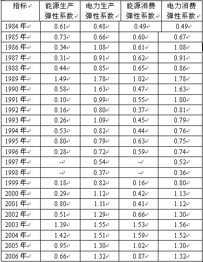 1984-2006年歷年全國能源生產彈性系數和能源消費彈性系數
