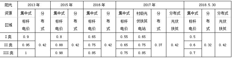 中國可再生能源標(biāo)桿電價(jià)退坡情況