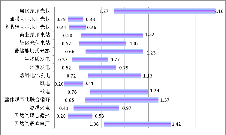 美國2017年的各種發(fā)電方式上網(wǎng)電價(jià)比較(單位:人民幣元/千瓦時(shí))