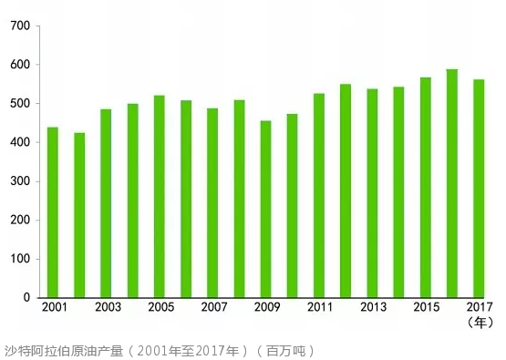 沙特阿拉伯原油產量(2001年至2017年)(百萬噸)
