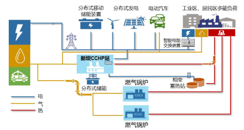 揚中新型城鎮能源互聯網示范項目天然氣三聯供能源站、分布式風電、分布式光伏發電、電動汽車充電設施、微電網,以及能源互聯網綜合管控與服務平臺鎮江揚中