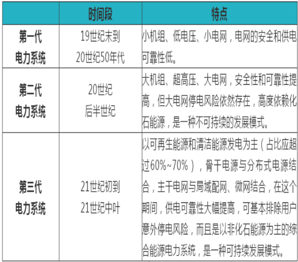 第三代電力系統是100多年來第一代、第二代電力系統的傳承和發展,是新形勢下推動能源轉型發展、構成新一代能源系統核心的新一代電力系統。新一代電力系統主要有四大特征:
