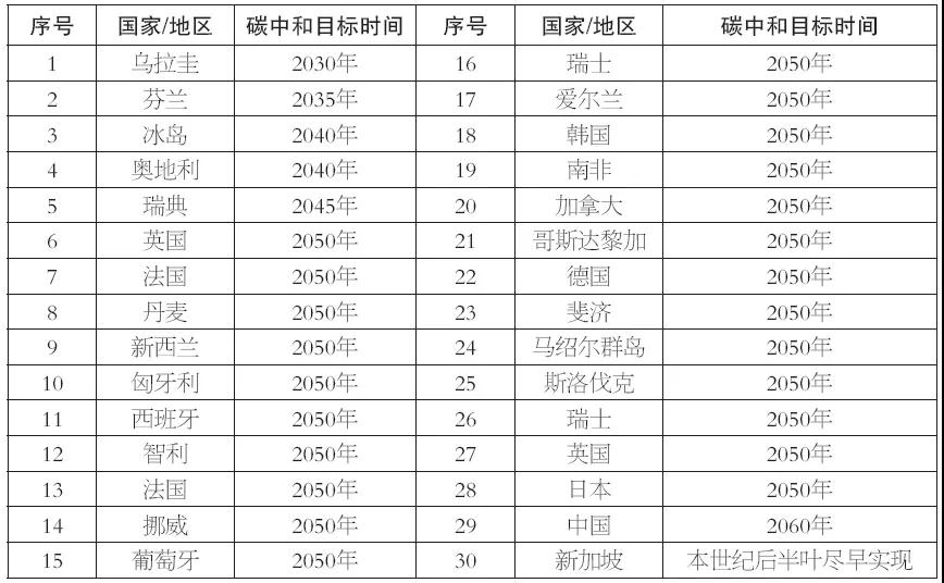 表1全球已設(shè)定碳中和目標(biāo)時(shí)間的國(guó)家/地區(qū)