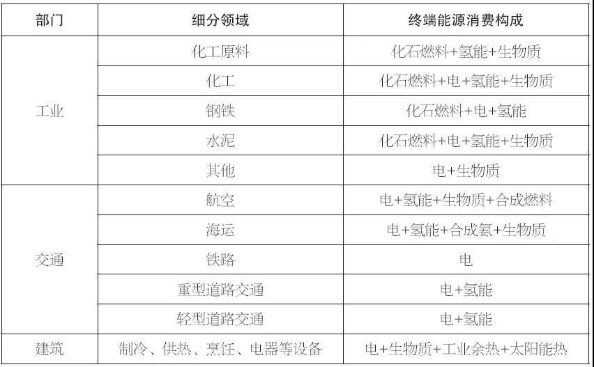 表2 碳中和目標(biāo)下2060年我國(guó)分部門(mén)終端能源消費(fèi)構(gòu)成展望