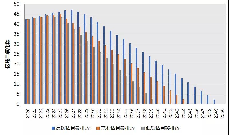 圖1 2020~2050年電力行業(yè)二氧化碳排放量