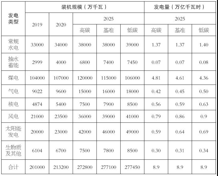 表3 2025年全國(guó)電源裝機(jī)規(guī)模及發(fā)電量