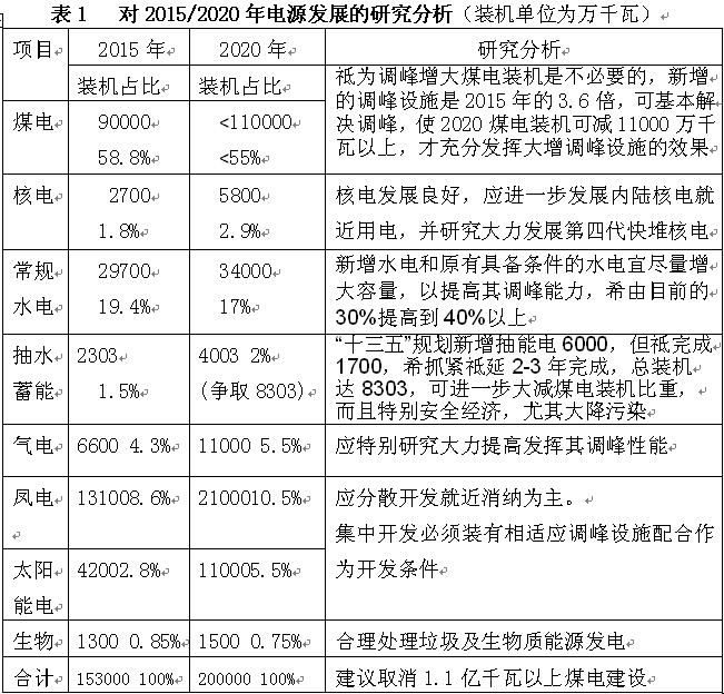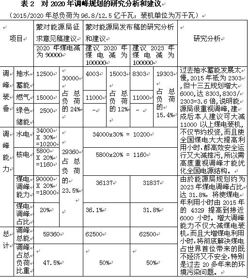 能源局現發布稿很重視調峰,"十三五"開始將徹底解決,表1已列出能源局(發布稿)2015和2020年裝機和本人研究分析,將抽水蓄能由原2015年2303萬千瓦增大到4003/8303萬千瓦,最大增幅3.6倍;又將燃氣機組由原6600萬千瓦增大到11000萬千瓦,增幅1.7倍;充分發揮大增調峰設施的效果,經本人分析其效果還可將煤電年利用小時由4329提高達到近6000小時,更將可大減煤電裝機,本人前報告曾建議取消"十三五"全部煤電裝機,但因為有的已經批準,所以建議"十三五"煤電裝機可大減11000萬千瓦以上,不僅節約投資,而且使全國煤電大大提高利用小時,都將高效安全運行又大減排污,的確高度重視調峰才能優化全國電源結構。