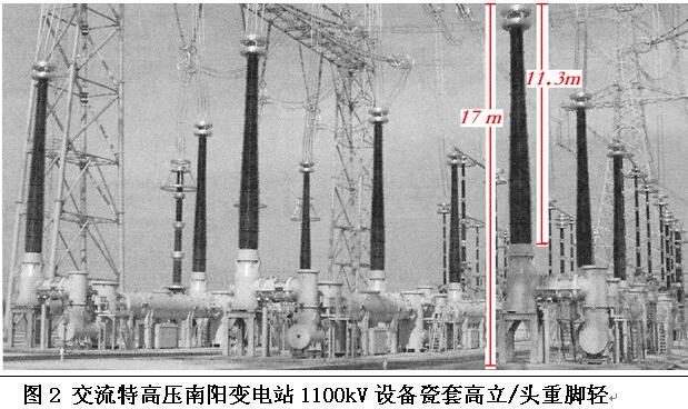 交流特高壓南陽變電站1100kV設備瓷套高立/頭重腳輕(圖2)。四川電壓愈高的鐵塔在山體滑坡時,愈易傾倒;交流特高壓線路更難抗地震,因為鐵塔更高,在山體滑坡時更易傾倒。