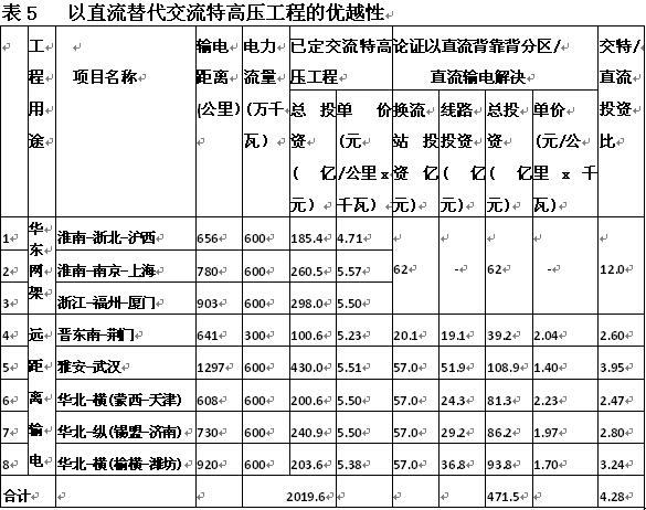表5以直流代替現有的交流特高壓工程的投資估算方法是來自2012年10月電規總院和西南、中南、廣東電力設計院的<南方電網中長期網架結構研究>。