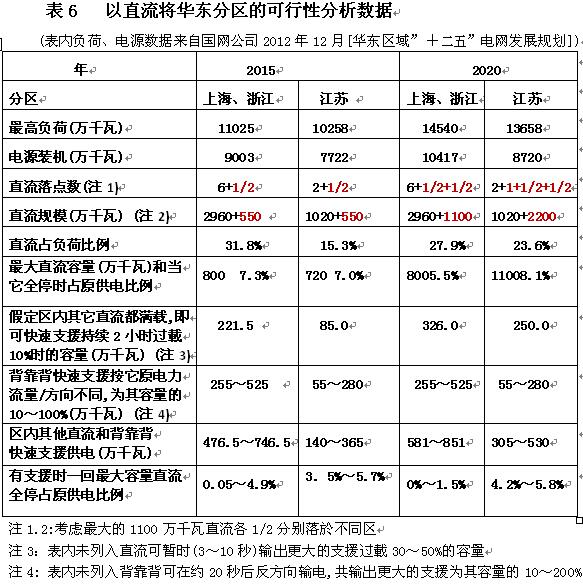 根據國網公司2012年12月和2013年5月《華東"十二五"電網發展規劃》三個報告,從2015/2020年華東各省市負荷需要和電源規劃證明,將來各個省市、包括安徽省都缺電,怎樣解決呢?一是繼續靠遠方直流輸電,二是在各城鎮負荷中心附近建新電源,各自作到電源/負荷基本平衡,互相之間不需要大規模輸電,現有500kV電網已滿足要求,根本不需要交流特高壓聯網。為了解決由於增設發電機組必然出現短路電流超標問題和保證更多直流饋入的安全問題,最經濟有效和安全可靠的辦法,還是貫徹《穩定導則》釆用直流將華東電網(隔離)異步互聯分為四個分區。各區事故互不影響,更不可能同時發生失穩/電壓崩潰/瓦解事故。表5列出一是繼續靠遠方直流輸電,二是在各城鎮負荷中心附近建新電源,完全作到各省市電源/負荷基本平衡,確定華東分為四個區域電網的可行性和必要性。
