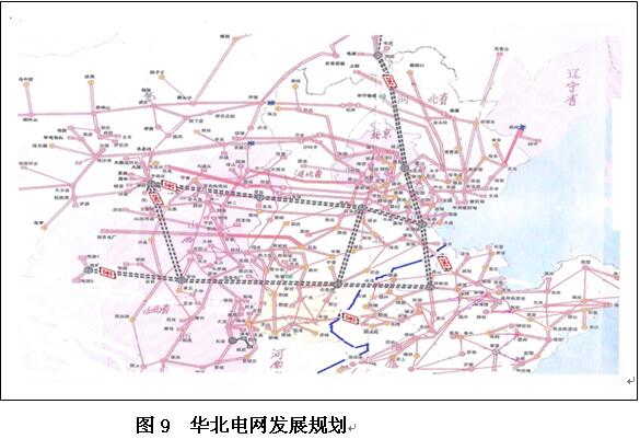 華北電網和華東不同,華東各區將來除接受遠來直流輸電外,各區電力相當自發自用,分區區間不需要傳送大電力,所以適宜分區大大提高可靠性。但華北的北京和天津市主要依靠外送,特別是靠很多密集的交流500kV線路從山西、河北輸送電力,所以難以分區,華北祗有采用兩個背靠背就可以和山東電網實行分區。