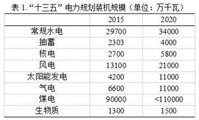 結(jié)合“十五”以來的電力經(jīng)濟(jì)關(guān)系量化特征和2014年以來的新趨勢,“十三五”期間4.8%的電力需求增速預(yù)期顯然過于樂觀,7萬億千瓦時可能是2020年全社會用電量的上限。“十三五”期間,全國常規(guī)水電新增投產(chǎn)約4000萬千瓦,開工6000萬千瓦以上,到2020年,常規(guī)水電裝機達(dá)到3.4億千瓦,抽水蓄能電站裝機新增約1700萬千瓦,達(dá)到4000萬千瓦左右;全國核電投產(chǎn)約3000萬千瓦,開工3000萬千瓦以上,2020年裝機達(dá)到5800萬千瓦。2020年,風(fēng)電裝機達(dá)到2.1億千瓦以上;太陽能發(fā)電裝機達(dá)到1.1億千瓦以上。“十三五”期間,氣電新增投產(chǎn)5000萬千瓦,2020年達(dá)到1.1億千瓦以上。“十三五”期間,取消和推遲煤電建設(shè)項目1.5億千瓦以上;煤電裝機規(guī)模力爭控制在11億千瓦以內(nèi)。