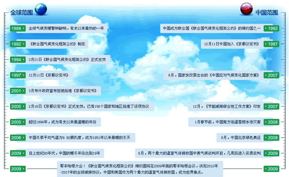 《聯合國氣候變化框架公約》是世界上第一個為全面控制二氧化碳等溫室氣體排放,應對全球氣候變暖給人類經濟和社會帶來不利影響的國際公約。據統計,目前已有190多個國家批準了《公約》。《公約》規定每年舉行一次締約方大會,1995年3月28日在柏林舉行了首次締約方大會。[詳細]