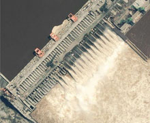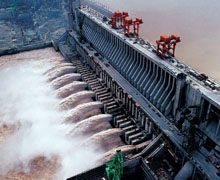 世界第一大的水電工程,位于西陵峽中段的湖北省宜昌市境內的三斗坪,距下游葛洲壩水利樞紐工程38公里。三峽大壩工程包括主體建筑物工程及導流工程兩部分,工程總投資為954.6億元人民幣。于1994年12月14日正式動工修建,2006年5月20日全線建成。三峽工程是迄今世界上綜合效益最大的水利樞紐,在發揮巨大的防洪效益和航運效益外,其1820萬千瓦的裝機容量和847億千瓦時的年發電量均居世界第一,三峽大壩榮獲中國世界紀錄協會世界最大的水利樞紐工程世界紀錄。