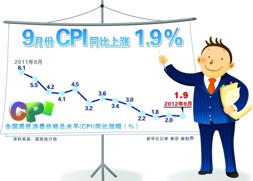 國家統(tǒng)計(jì)局今日發(fā)布9月份宏觀經(jīng)濟(jì)數(shù)據(jù)顯示,2012年9月份,全國居民消費(fèi)價(jià)格總水平同比上漲1.9%,1-9月平均,全國居民消費(fèi)價(jià)格總水平比去年同期上漲2.8%。9月...[詳細(xì)]