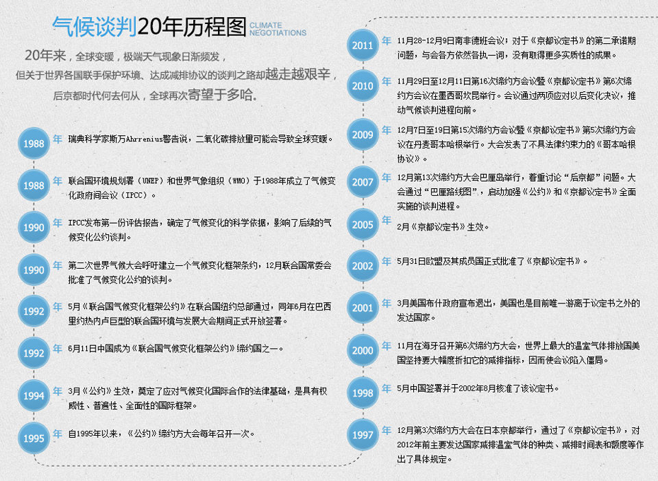 1:大會取得的最大成果是,最終就2013年起執(zhí)行《京都議定書》第二承諾期達成了一致;第二承諾期時限的5年和8年之爭,最終以8年期限達成一致。