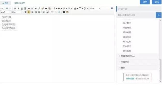 平臺提供多種購售電合同模板,點擊即用,一鍵滿足用戶多樣化需求。用戶還可以直接編輯內容作為購售電合同模板,實現合同模板的靈活配置,為售電公司的業務創新提供技術支撐。