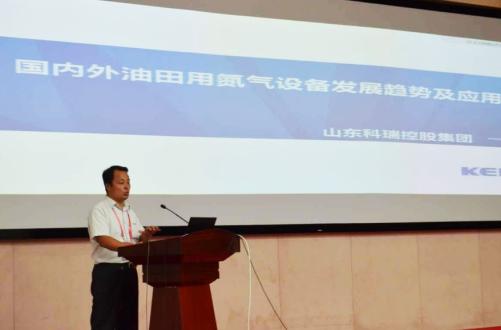 在展會同期舉辦的 “一帶一路”戰略暨中國制造2025高峰論壇上,國內制氮行業的領軍人物,中國石油大學(華東)客座教授、山東科瑞油氣增產作業裝備事業部總工程師王玉軍精彩分享了《油田用氮氣設備發展趨勢及國內外油田市場應用》課題。