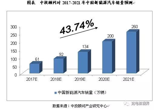綜合以上因素,我們預(yù)計(jì),2017年我國新能源汽車銷量將達(dá)到61萬輛,未來五年(2017-2021)年均復(fù)合增長率約為43.74%,2021年將達(dá)到260萬輛。