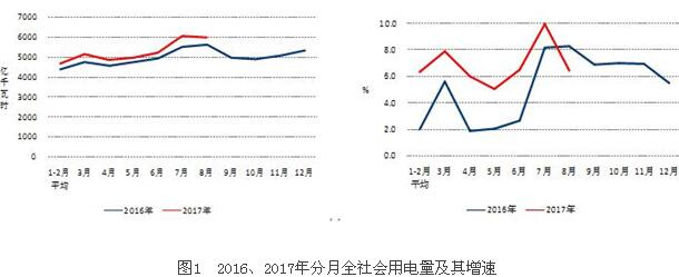 1-8月份,全國電力供需總體寬松。全社會用電量當月增速環比放緩,三產用電量繼續較快增長;工業和制造業用電累計增速同比提高;高載能行業用電累計增速同比提高,有色金屬冶煉行業當月用電增速連續兩個月回落;發電裝機容量增速放緩,水電當月發電量連續兩個月正增長;水電利用小時同比降低,其他類型發電設備利用小時同比增加;全國跨區、跨省送出電量同比增長;新增太陽能發電裝機大幅提高,帶動全國新增發電裝機同比增加。