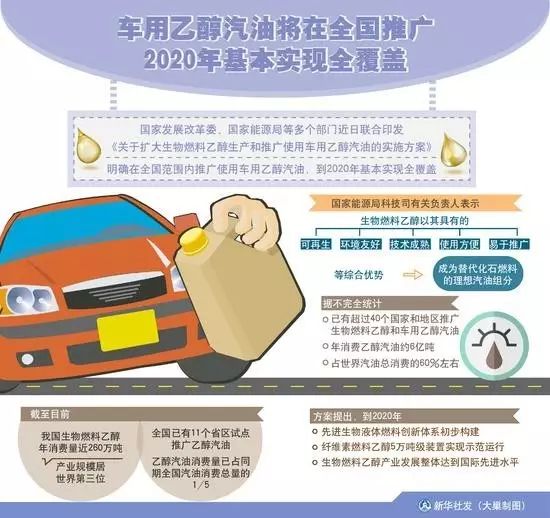 本周,國家發展改革委、國家能源局、財政部等十五部委聯合印發《關于擴大生物燃料乙醇生產和推廣使用車用乙醇汽油的實施方案》。該方案要求,到2020年,將在全國范圍內推廣使用乙醇汽油。