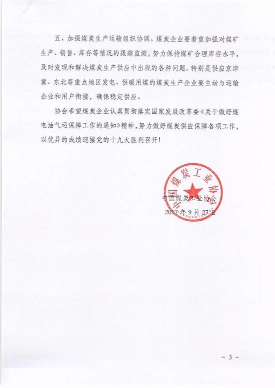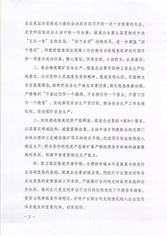 中國煤炭運銷協(xié)會發(fā)布《關(guān)于進(jìn)一步做好今冬明春煤炭供應(yīng)保障工作的通知》,提出加快推進(jìn)煤炭優(yōu)質(zhì)產(chǎn)能釋放,努力穩(wěn)定煤炭市場價格。