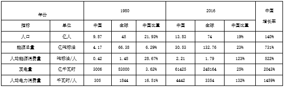 1980-2016中國能源電力消費量變化