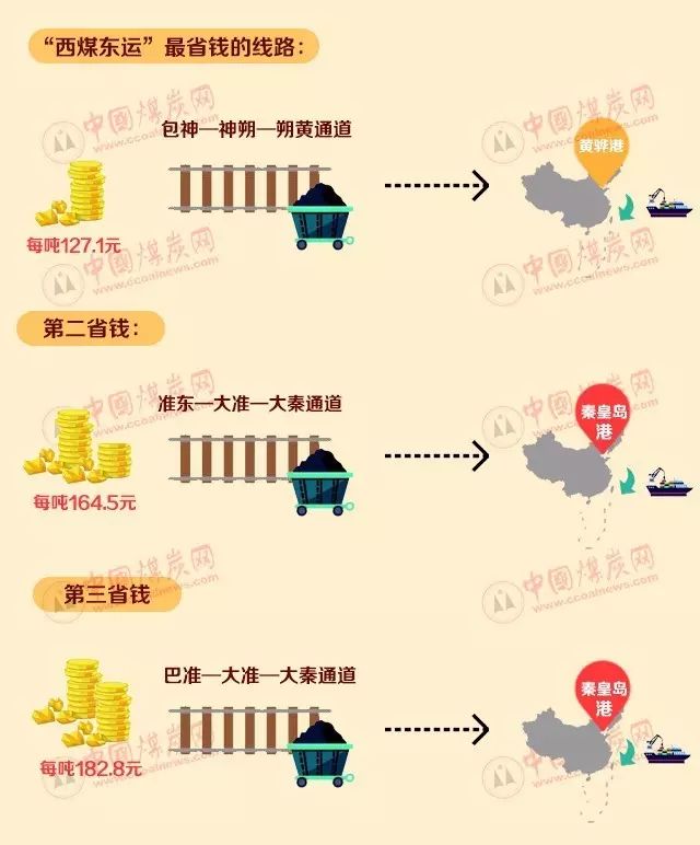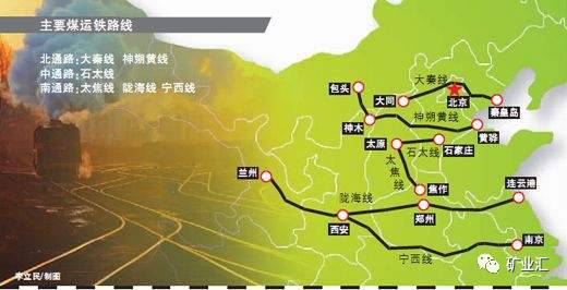 中國煤炭輸出量大,根據其方向,可分為北、中、南3路。