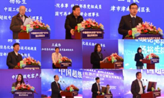 會議由中國超級電容產業聯盟高波秘書長做大會開幕式講話,騫偉中副秘書長做大會主持。國務院參事、原科技部黨組成員石定寰參事,工業和信息化部原科技司韓俊副司長、工業和信息化部電子信息司王威偉處長、國家標準化管理委員會工業二部劉大山處長、中國電子工業標準化技術協會劉志宏秘書長、熊建國副秘書長,天津市津南區王智毅副區長、天津市津南經濟開發區管委會張強主任等專家和領導出席了本次會議。中國工程院院士、中國超級電容產業聯盟理事長楊裕生院士做大會賀詞。