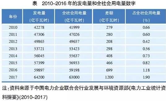 在我國的電力數(shù)據(jù)統(tǒng)計中,包括發(fā)電量和全社會用電量,發(fā)電量比全社會用電量大。有人以為發(fā)電量包括廠用電、線損,其實全社會用電量中也包括廠用電、線損。這個差額主要是進出口電量。隨著我國國際交往增加,洲內(nèi)跨國聯(lián)網(wǎng),洲際聯(lián)網(wǎng)增加,以及全球能源互聯(lián)網(wǎng)的發(fā)展,發(fā)電量的數(shù)字會不斷增加,如在2010年差額為279億千瓦時,占全社會用電量0.66%,到2017年已達到1200億千瓦時,占全社會用電量1.18%。這是我們承擔的國際義務(wù),這部分發(fā)電量和全社會用電量一樣是不能少的,所以我們在預測全國用電量之外,應(yīng)當預測總發(fā)電量。2010年~2017年的發(fā)電量和全社會用電量數(shù)字如下表: