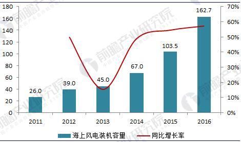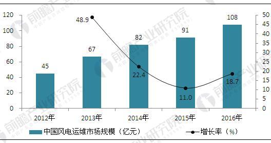據前瞻產業研究院統計,2016年我國風電運維市場規模在108億元左右,而在“十三五”期間,國家仍將風電裝機容量增加作為重要發展事項,不難想象,這將給我國的風電運維服務提供極大的發展空間。