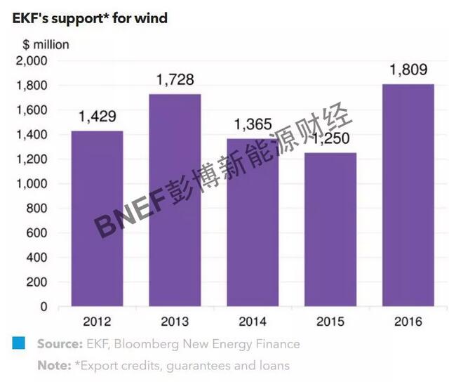 丹麥EKF依然是全球最積極支持清潔能源發展的出口信貸機構之一。2016年,該機構近80%的新貸款、出口信貸和營運資金擔保均進入了風電行業,創下了歷史紀錄。海上風電領域成為獲得此類支持的主導領域。