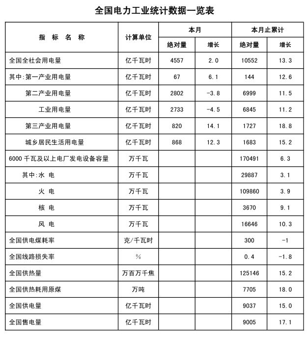 1-2月,全國全社會用電量累計10552億千瓦時,同比增長13.3%。分產業看,第一產業用電量144億千瓦時,同比增長12.6%;第二產業用電量6999億千瓦時,增長11.5%;第三產業用電量1727億千瓦時,增長18.8%;城鄉居民生活用電量1683億千瓦時,增長15.2%。
