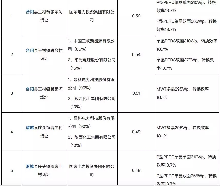 企業:國家電投*2、三峽&陽光電源、晶科&陜西化工*2