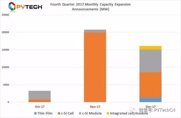 2017年四季度打破了自2014年年初以來創下的所有多吉瓦級季度記錄,總產能擴張計劃超過40GW。