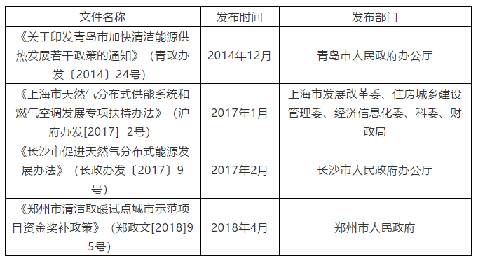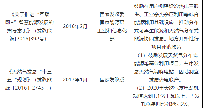 國家層面對于天然氣發電及燃氣聯供項目有明確補貼支持和數量要求的政策性文件主要如下表1所示。