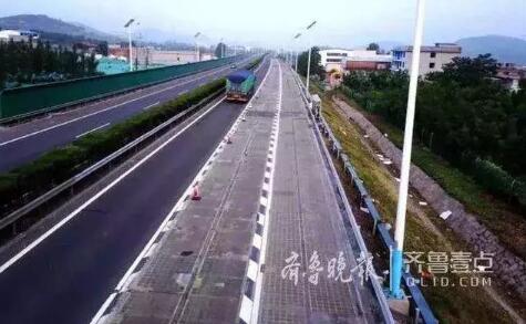近日,濟南南繞城高速光伏路面試驗段光伏路面所在的車道被工程人員暫時封閉進行維修,車輛只能從左側車道走。