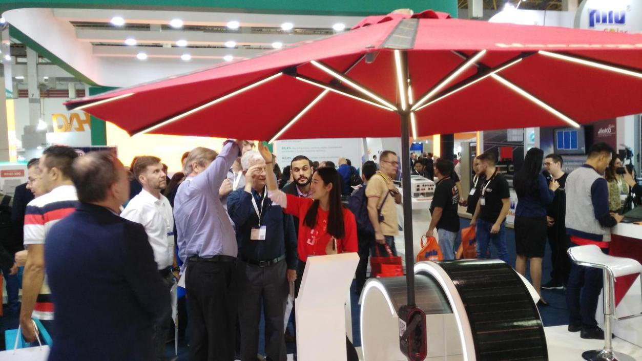 作為漢能正式進軍拉美市場的第一步,8月28-30日,漢能作為薄膜太陽能行業的領軍企業,攜旗下漢傘、漢包、漢紙等系列產品及多款柔性組件亮相巴西國際太陽能展,向世界展示了漢能的科技創新成果以及全系移動能源戰略應用產品,吸引了眾多海外“粉絲”,很多客戶被漢能的產品所吸引,參觀完就決定簽單。此外,現場還收獲了多家企業的合作意向,成功實現銷售開門紅。
