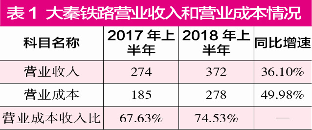 8月28日,大秦鐵路公布的2018年中報業績顯示,公司上半年實現營業收入372.33億元,同比增長36.10%;實現歸母凈利81.92億元,同比增長7.48%;實現歸母扣非凈利潤82.09億元,同比增長7.29%。大秦鐵路公布的這份成績單有一個明顯的特征,即增收不增利。那么,導致大秦鐵路上半年增收不增利的因素是什么呢?