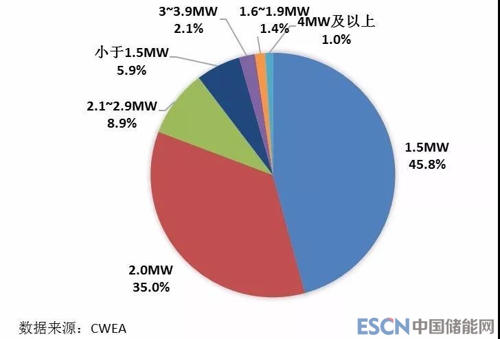 圖10 2017年中國不同功率風電機組新增裝機容量比例