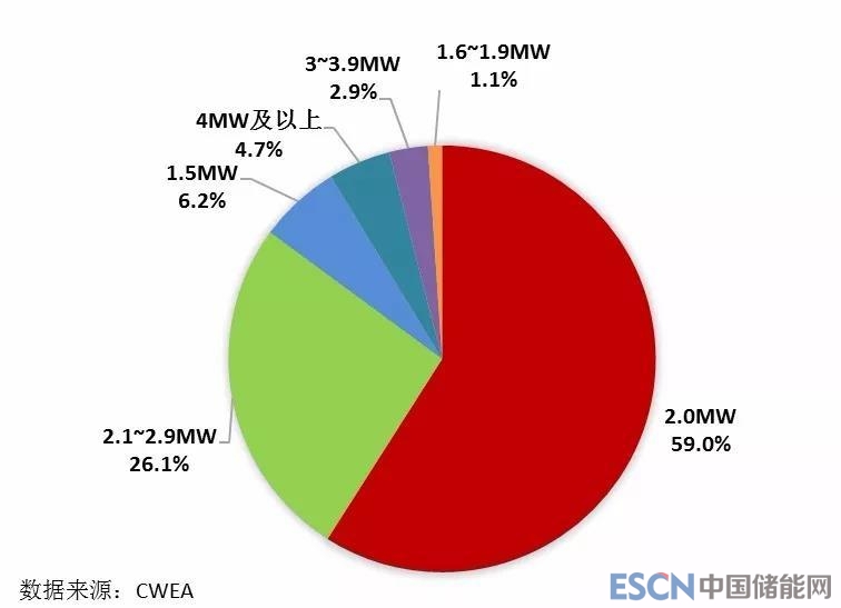 圖11 截至2017年底中國不同功率風電機組累計裝機容量比例
