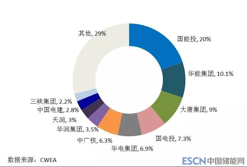 圖13 2017年中國風電開發企業新增裝機市場份額