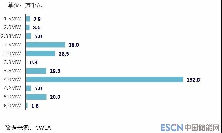 圖18 2017年中國海上風電不同功率機組累計裝機容量