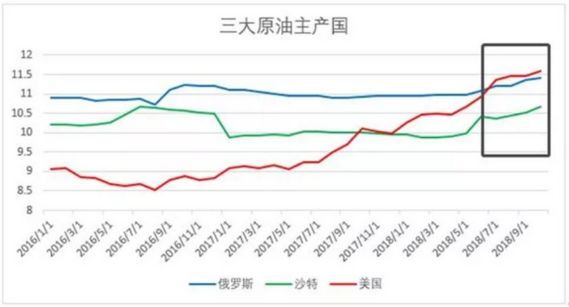 最令市場擔(dān)心的還是美國。從下圖就能看出,紅線為美國,近年來產(chǎn)量增速最為迅猛。尤其是,今年8月份,美國原油產(chǎn)量成功超越俄羅斯成為全球最大的原油生產(chǎn)國。