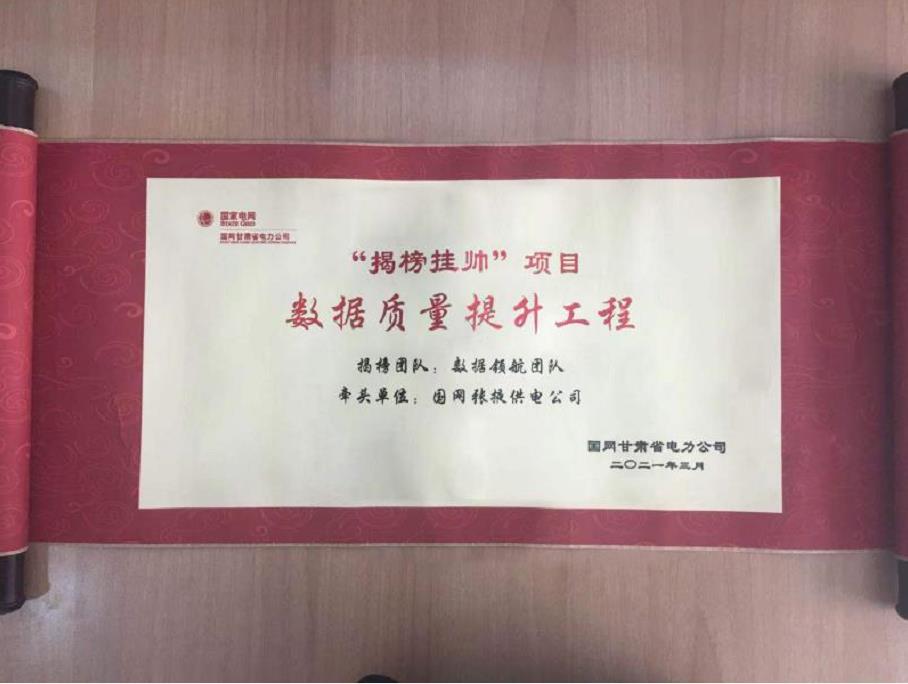 3月17日,國網(wǎng)甘肅省電力公司 2021 年“揭榜掛帥”數(shù)字化項(xiàng)目發(fā)布暨柔性團(tuán)隊(duì)建設(shè)啟動(dòng)會(huì)在蘭州召開,會(huì)上由省公司副總經(jīng)理路民輝宣布了“揭榜掛帥”數(shù)字化項(xiàng)目榜單,葉軍董事長向“揭榜掛帥”團(tuán)隊(duì)授牌。張掖公司經(jīng)前期積極籌劃、精心準(zhǔn)備,立足公司管理、創(chuàng)新、團(tuán)隊(duì)優(yōu)勢(shì),以核心業(yè)務(wù)數(shù)據(jù)治理、數(shù)據(jù)融合為要求,以深入貫徹?cái)?shù)據(jù)為重要生產(chǎn)因素為理念,主動(dòng)請(qǐng)纓,通過層層審核,揭榜掛帥《國網(wǎng)甘肅省電力公司數(shù)據(jù)質(zhì)量提升工程》項(xiàng)目,標(biāo)志著公司數(shù)字化轉(zhuǎn)型、行業(yè)變革開啟了新征程。