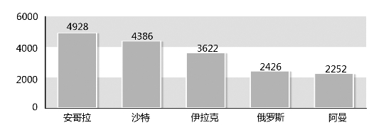 2018年中國原油進口五大來源國(據(jù)網(wǎng)絡資料整理)