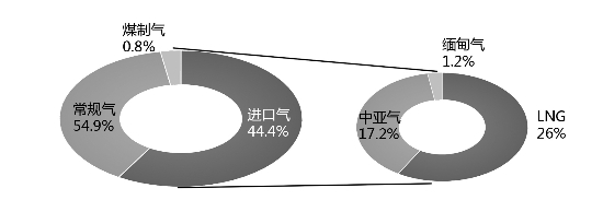 2018年中國天然氣供應結(jié)構(gòu)(來源:2018年國內(nèi)外油氣行業(yè)發(fā)展報告)