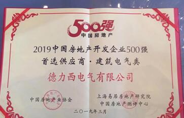 3月20日,北京,備受業界關注的中國房地產開發企業500強測評成果發布會暨500強峰會如期開幕。2019年度"中國房地產開發企業500強"和"500強房企首選供應商服務商品牌"等測評榜單同步揭曉,中國電氣行業領先企業德力西電氣不負眾望再度榮膺500強房企首選供應商服務商品牌,以突出的綜合實力持續成為500強房地產企業值得信賴的戰略合作伙伴。