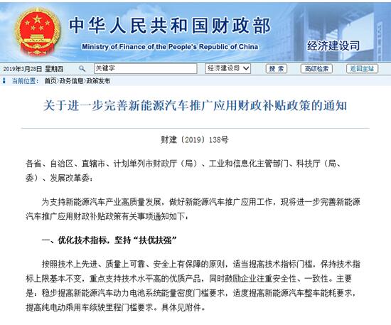 車輪據悉,財政部、工信部、發改委、科技部四部于3月26日聯合發布《關于進一步完善新能源汽車推廣應用財政補貼政策的通知》,《通知》通過優化技術指標堅持"扶優扶強"、完善補貼標準分階段釋放壓力、完善清算制度提高資金效益、營造公平環境促進消費使用、強化質量監管確保車輛安全等多方位支持新能源汽車產業高質量的發展。