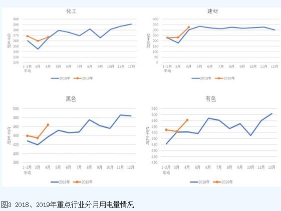 4月份,四大高載能行業用電量合計1648億千瓦時,同比增長3.7%,增速比上年同期提高0.8個百分點,占全社會用電量的比重為29.8%。其中,化工行業用電量367億千瓦時,同比增長0.3%,增速比上年同期提高0.4個百分點;建材行業用電量326億千瓦時,同比增長6.9%,增速比上年同期提高6.2個百分點;黑色金屬冶煉行業用電量464億千瓦時,同比增長6.1%,增速比上年同期回落3.4個百分點;有色金屬冶煉行業491億千瓦時,同比增長1.9%,增速比上年同期提高1.1個百分點。